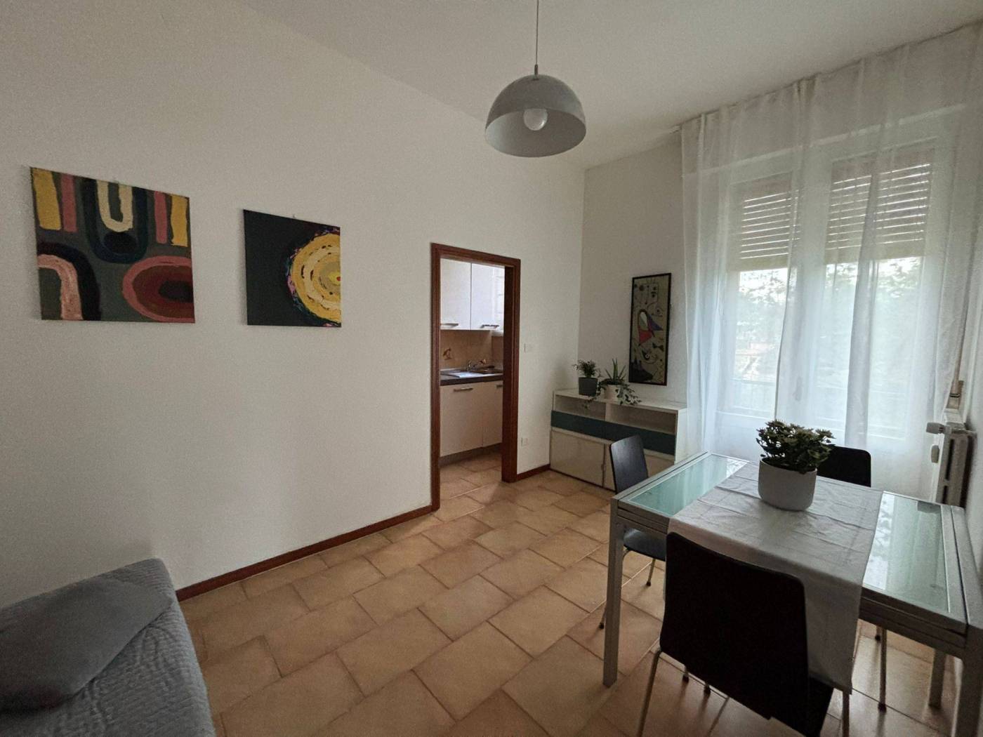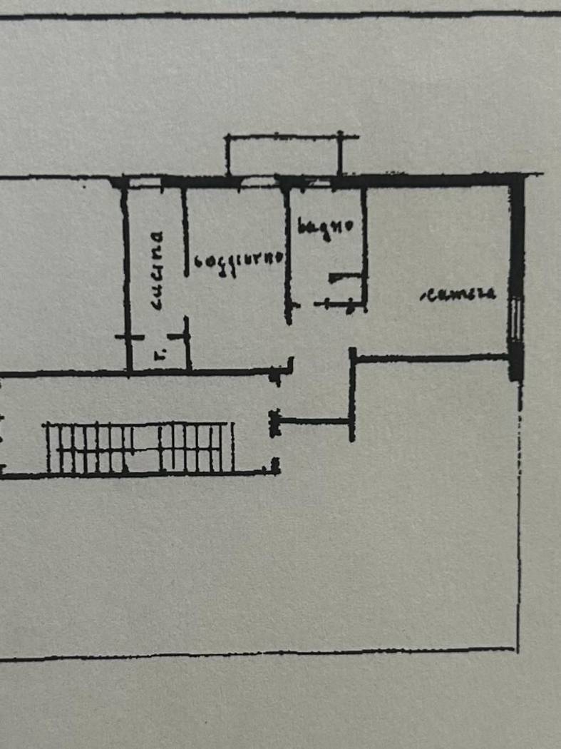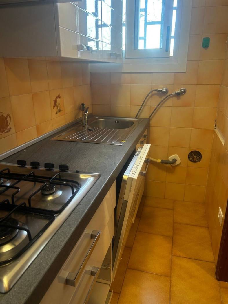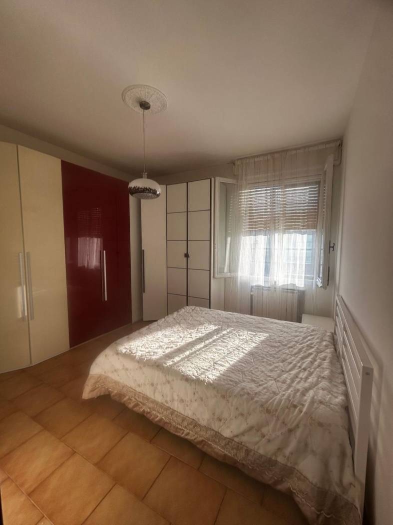 Appartamento al secondo piano composto da ingresso, ampia camera matrimoniale luminosa, tinello con accesso al balcone, cucinotto con cucina di recente installazione con elettrodomestici e lavastoviglie, ripostiglio e bagno. Balcone, doppi vetri e doppi infissi. Tutti i sanitari sono nuovi. Il muro che divide il cucinotto dal tinello può essere facilmente tolto, non è un muro portante, con la possibilità di fare un unico ambiente giorno. Possibilità di parcheggio con posto auto NON assegnato. Cantina ciclabile al piano terreno. Spese condominiali comprese di riscaldamento. L'appartamento si trova in una piccola strada, silenziosa, ma vicina ai servizi, a 100 mt fermata degli autobus e veloci strade per tangenziale. Allegate foto di rendering di come può essere facilmente trasformato l'appartamento.