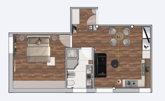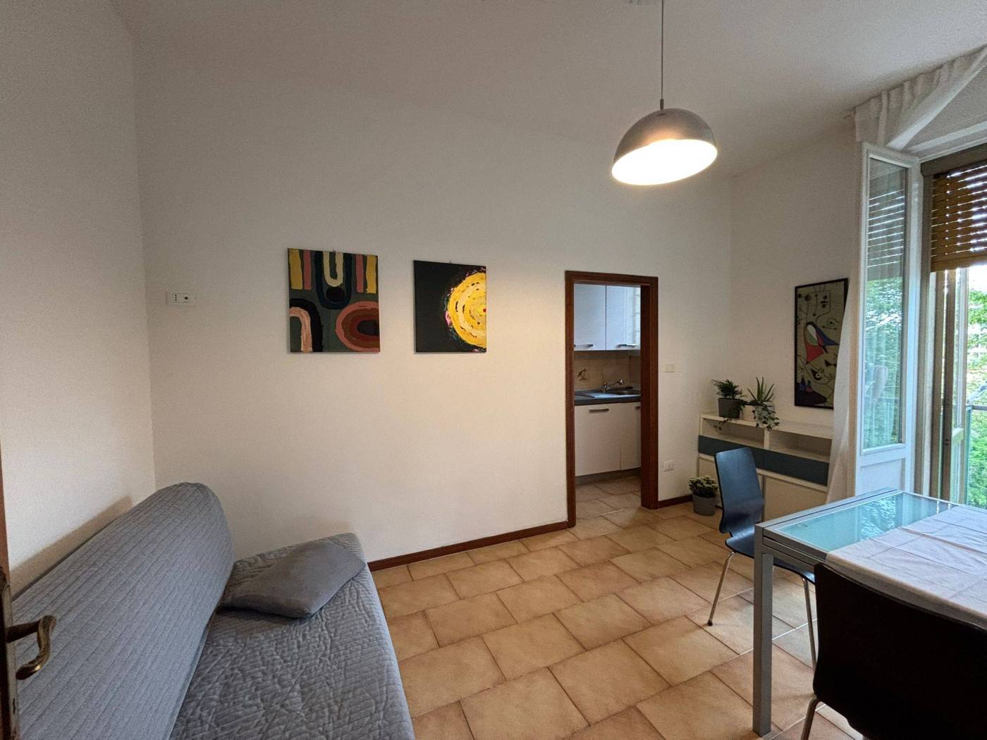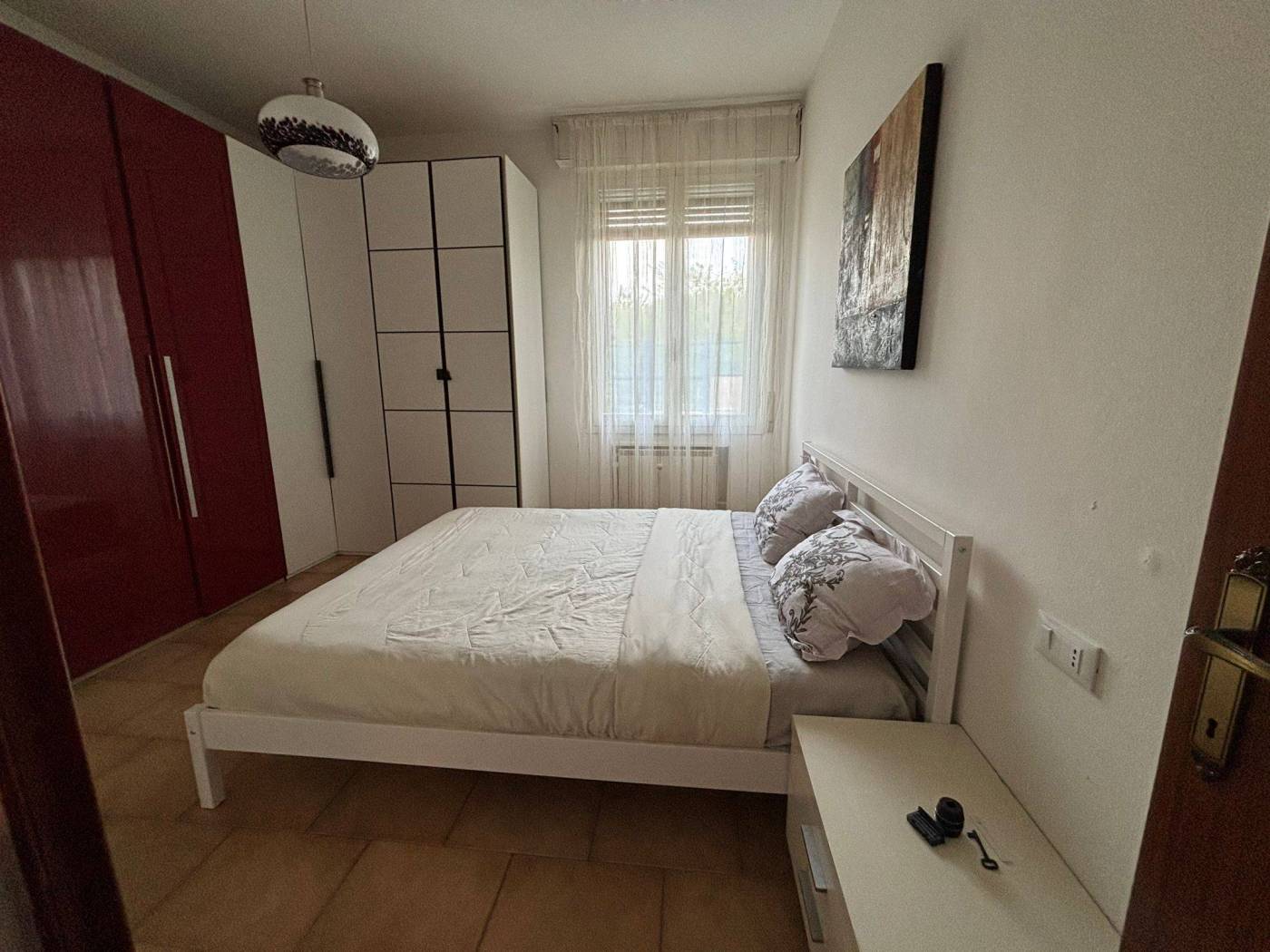 Appartamento al secondo piano composto da ingresso, ampia camera matrimoniale luminosa, tinello con accesso al balcone, cucinotto con cucina di recente installazione con elettrodomestici e lavastoviglie, ripostiglio e bagno. Balcone, doppi vetri e doppi infissi. Tutti i sanitari sono nuovi. Il muro che divide il cucinotto dal tinello può essere facilmente tolto, non è un muro portante, con la possibilità di fare un unico ambiente giorno. Possibilità di parcheggio con posto auto NON assegnato. Cantina ciclabile al piano terreno. Spese condominiali comprese di riscaldamento. L'appartamento si trova in una piccola strada, silenziosa, ma vicina ai servizi, a 100 mt fermata degli autobus e veloci strade per tangenziale. Allegate foto di rendering di come può essere facilmente trasformato l'appartamento.