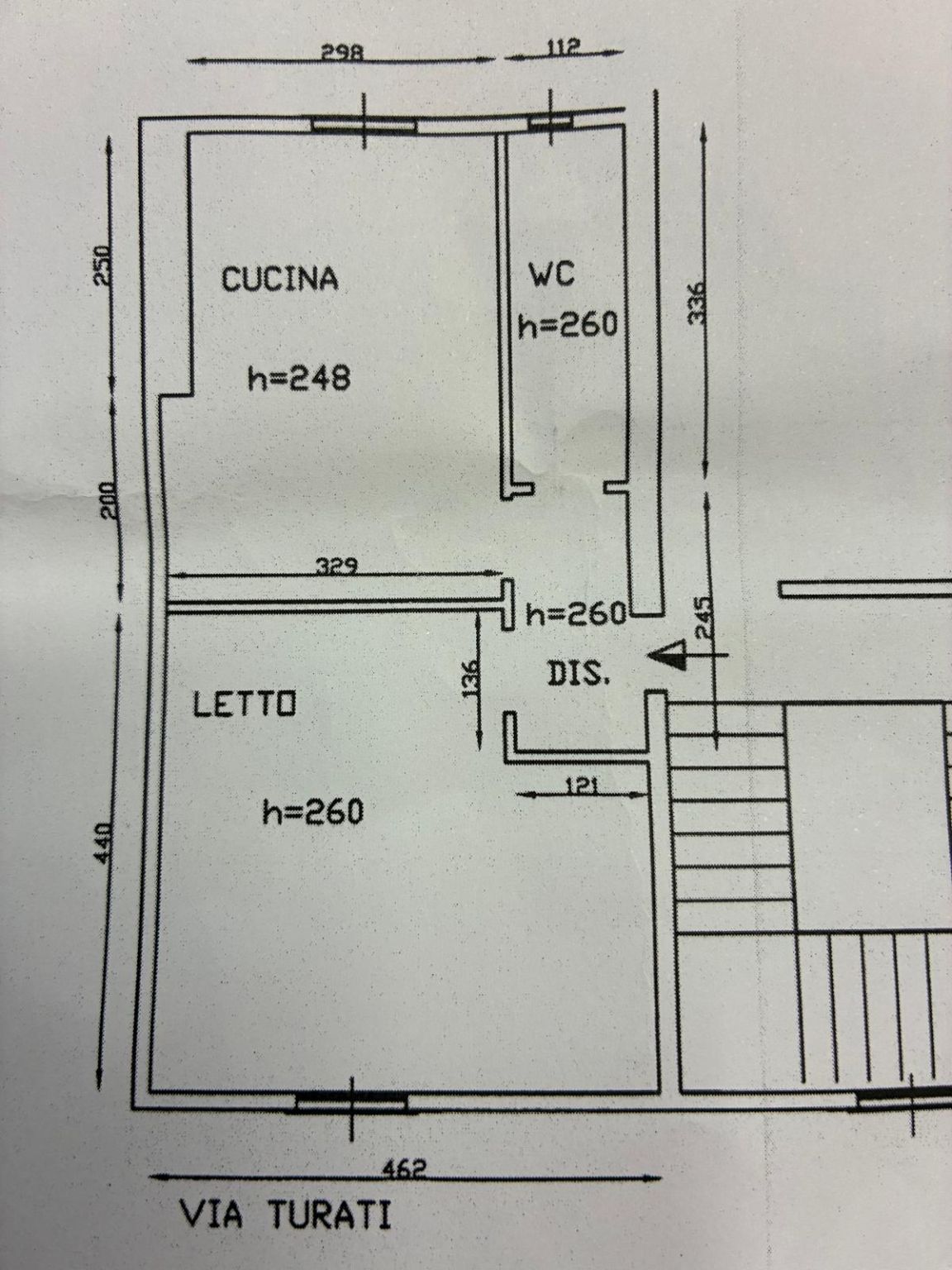 Affittasi appartamento al 3' ed ultimo piano, bilocale con camera matrimoniale e ampia cucina abitabile. Bagno con doccia. L'appartamento dispone di aria condizionata, porta blindata, arredamento semi nuovo. Ritinteggiato e pulito l'appartamento dispone anche di soffitta e cantina. Piccola palazzina con bassissime spese condominiali, 25 euro per pulizia scale.
